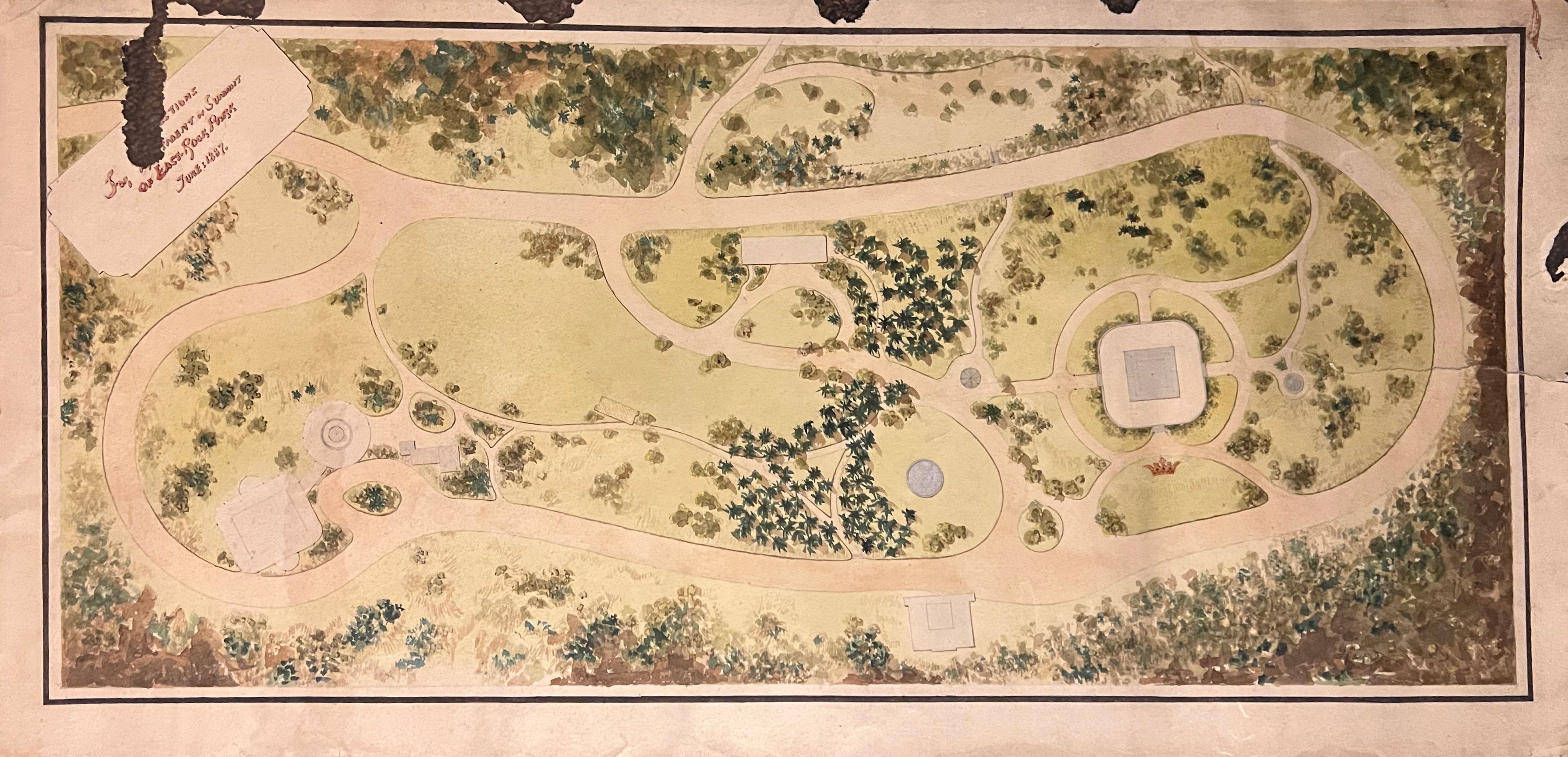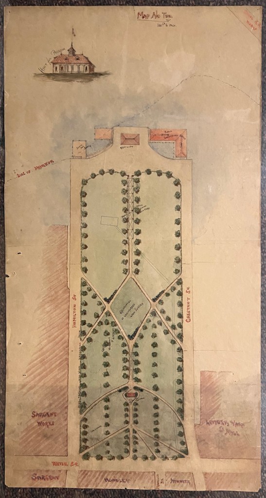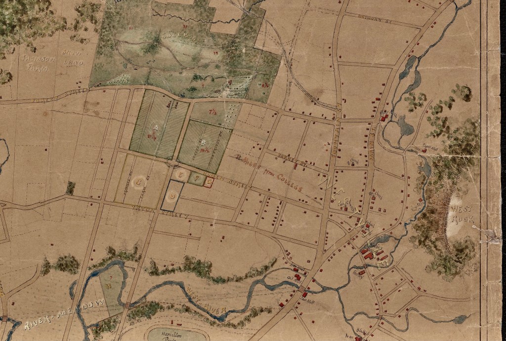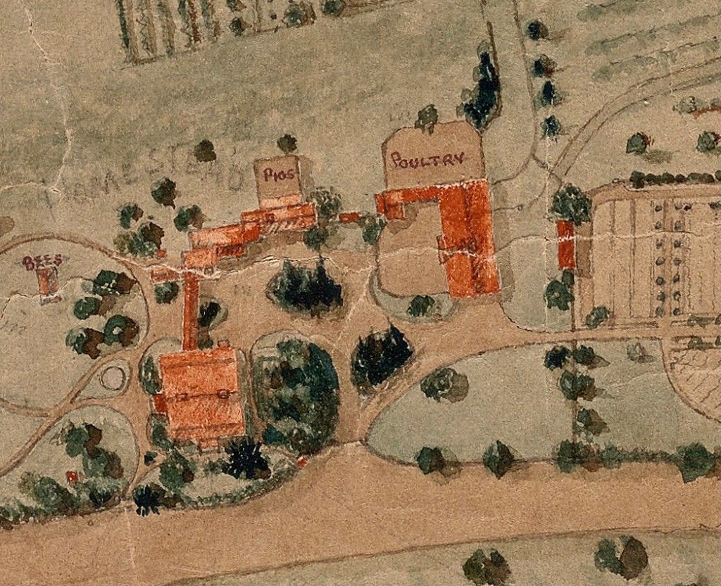 This map shows the Edgewood Farm at a time when DGM was in financial straits and thinking about selling off parts of the farm for “villa” sites to raise money. If you look closely just slightly above the midpoint E-W latitude you will see 4-5 great little images of tiny villas strewn across the map.